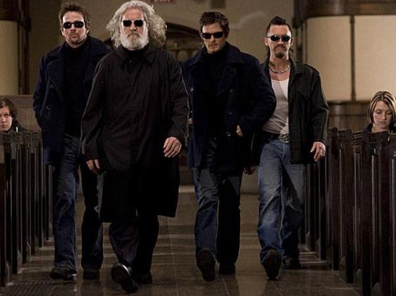 The Boondock Saints 2: All Saints’ Day, whose subtitle makes about as much sense as that of Die Hard 2, has more or less the same plot as the first film. Mobsters are bad, Jesus is good (kinda), and the McManus brothers – Connor (Sean Patrick Flanery) and Murphy (Norman Reedus), along with their father, Il Duce (Billy Connolly), and brand new Mexican sidekick, Romeo (Clifton Collins, Jr.), are anointed by God and cinema to wax as many evildoers as possible. With the mob, the Boston PD, and the FBI hot on their trail (after a very public mobster killing at the end of the first film), the boys must survive using only their wits, their guns, and their uncanny ability to avoid all return fire while sitting immobile on their haunches flailing their gun-arms wildly.