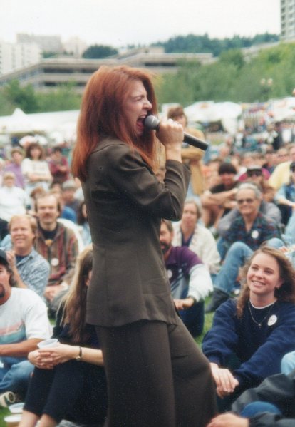 So says and embodies Duffy Bishop, a little-known Seattle blues singer with an intensely powerful voice and a brilliant eye for performing. My shameful admission is this: I preferred this film to Kevin simply because I enjoyed the musician’s performances far more. The director, Brian Johnston, informed us at the screening that this film was made for $150, via equipment and students borrowed from Ballard High School. But even absent this information, the film is still fairly impressive on a technical level. It relies heavily on a smattering of archival concert footage, and despite the highly variable quality of the image, the sound came through remarkably well, and conveyed all the richness and power of Duffy’s performances that could possibly shine through without seeing and hearing them in person. It’s not only clear that Duffy has a towering vocal presence, but she is also an enthusiastic stage performer, shimmying through the audience with a wireless mic and unabashed enthusiasm. The rest of the film is an exploration of the elusive nature of widespread fame, via interviews and phone calls to record stores around the world to see if they have any Duffy Bishop CDs in stock (this venture doesn’t go well). The editing between the interviews and concert footage is tight, overlapping the performance soundtracks nicely whenever appropriate, without letting them wear out their welcome.