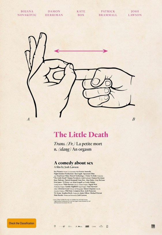 The Little Death – writer/director Josh Lawson‘s reference to the French euphemism for an orgasm – is a sex comedy that’s trying to be edgy. The last one of those I saw was Jake Kasdan‘s Sex Tape, which was such a colossal failure at both edginess and human relationships that it made me wonder if American cinema actually understands how people are fucking these days. But as ever, foreign cinema seems happy to pick up the slack, with everything from raunchy ensemble comedies like Young People Fucking to dark, fringe-straddling dalliances like Lars von Trier‘s Nymphomaniac. The Little Death has the most in common with the former film, as its script firmly sits in stylized, over-the-top Comedy World. But like the latter, it also has a vicious streak. While the writing and pace of the film had occasional issues, the acting is stellar, and the jagged edge and gleeful darkness of the film places it most closely in the realm of Todd Solondz.