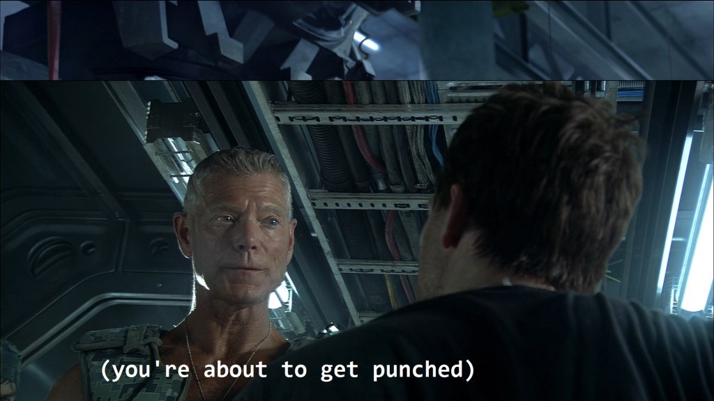 When Omaticaya crown priestess Neytiri (Zoe Saldana) first encounters Avatar-Jake blundering around the forest and killing animals to survive, she minces no words in calling him an ignorant baby who doesn’t know how to do anything. Much of his later proficiency in all things Na’vi is explained in a series of bog-standard (albeit gorgeous) training montages. But it’s fair to say this film rightfully attracts some criticism (both racialized and not) about its white everyman protagonist showing up on this planet and this tribe and immediately becoming their Chosen One who’s better at everything than they are. Toruk Makto – a mantle Jake assumes by sky-raping a Leonopteryx – might be the best flyer, but his most absurd acquired skill is performing oratory, a skill whose execution the film wisely presents in montage form, with Jake and Neytiri bounding around Pandora to recruit every tribe to the cause, with only the odd snippeted cliché (“AND YOUR CHILDREN’S CHILDREN”) making it onto the audio track. How silly is this? We’ve spent the entire film learning that the Na’vi generally and the Omaticaya specifically value different things than the Sky People. There is no carrot that would convince them to leave Hometree, which is why the humans decide to use the military stick. The idea that Jake could give an inspiring speech to the Na’vi on no greater basis than abandoning the human hand he was dealt is absurd on its face. As the axiom goes – if a lion could speak, we couldn’t understand it. The idea that Jake, even through a translator, could somehow appeal to the values of the Na’vi – wholly inhuman values that he barely understands himself – is the most condescending component of this character. It’s entirely possible that the tribes might band together to defend their planet. But I’d rather the convincing had been left to Neytiri herself, or perhaps the new Omaticaya chief Tsu’tey (Laz Alonso) could take a crack at it during his doomed tenure.