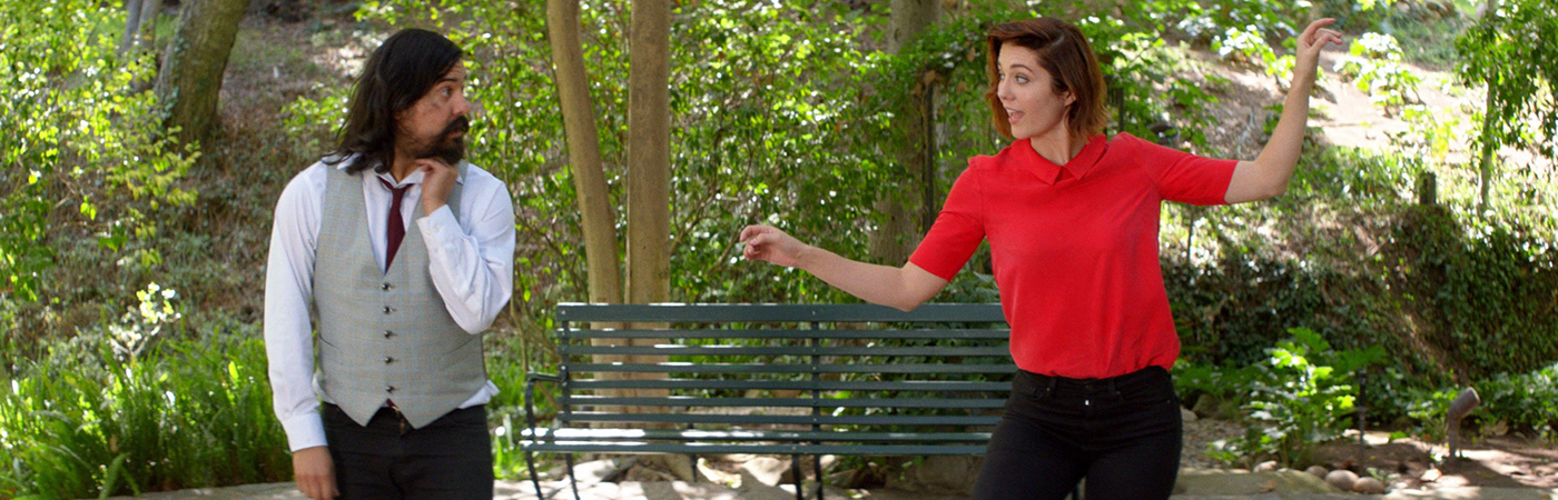 In this short, Mary Elizabeth Winstead plays a singer-songwriter dealing with a bout of writer’s block in her home studio. After staying up all night and blowing off plans with her sister (clearly not for the first time), she wanders to a lovely park and finds her muse – an unnamed puckish figure in a suit who is attached to a bicycle with a U-Lock. The stranger is played by Ryan Kattner, who also wrote the film’s original music – and the magical realism ensues quickly, as Winstead and Kattner immediately begin a choreographed song-and-dance number set to the music of Van Morrison, and it is magnificent.
